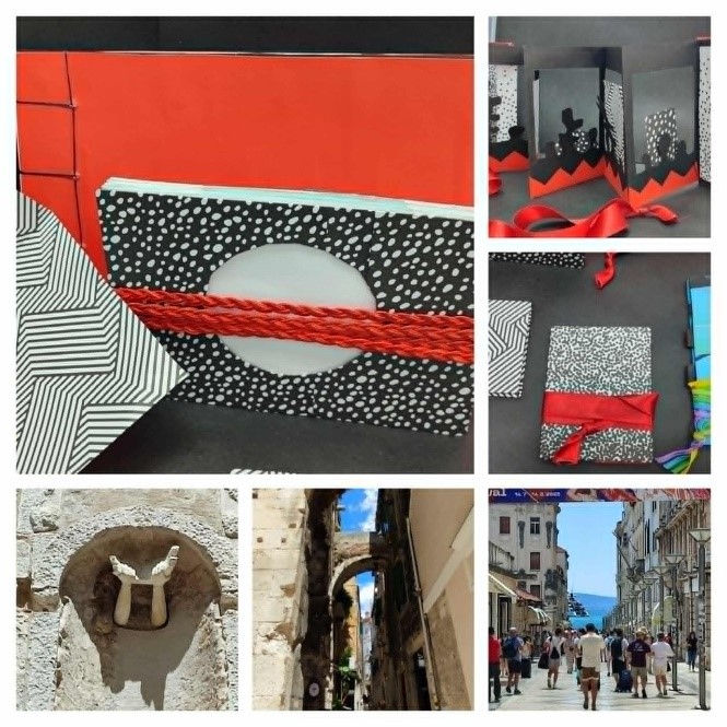 2025.júllius 28-tól augusztus1-ig vettem részt az Erasmus + 2024-1-HU01-KA121-SCH-000205361 számú projektjének keretében Splitben a Travel&Learn, Book Binding as a Tool to Keep Mental Health elnevezésű 5 napos képzésén. A kurzus helyszíne kiváló helyen volt, könnyen megközelíthető a központhoz közel. A képzés leírása a könyvkötészet fajtáinak megismerését, gyakorlását, aktív kreatív tevékenységet a tanításban alkalmazható módszereket igért, de ennél sokkal többet adott. A csoportunk tervezett 7 fő helyett csak 3 fő volt, ami a sok kreatív gyakorlati feladat megoldásakor igazából előnyt jelentett. Az oktatónk, Zorán, horvát művésztanár, aki félévig Japánban tanulta a könyvkötészetet, igyekezett átadni nekünk minél több tudást, szakmai fogásokat a gyakorlatban. A két kurzustársam Jana és Claudia, Szlovákiából és Olaszországból érkezett. A közös nyelv az angol volt, amit különböző szinteken beszéltünk, mégis mindent megértettünk és sokat fejlődtünk az együtt eltöltött idő alatt. Sokat ötleteltünk közösen és megosztottuk egymással jó gyakorlatokat. Fontos téma volt a tanulók mentális egészségének megőrzése. A kurzus folyamán a kreatív gyakorlati feladatokon keresztül saját magunkon és érezhettük az elmélyült tervezői és kivitelezői munkafolyamat mentális hatásait és képet kaptunk arról, hogy egy-egy téma feldolgozása milyen mély belső érzéseket, vagy akár traumákat is képes oldani a tanulóknál akár csoportos, akár egyéni szinten.